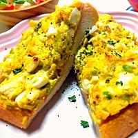 明太子のプチプチ食感とアボカドの滑らかさが絶妙なハーモニーを奏でる贅沢なトーストです。ゆで卵とマヨネーズで作るタルタル風の具材は、ボリューム満点で食べ応え抜群。ハチミツのほんのり甘みが明太子の辛みをマイルドに整えてくれます。チーズをトッピングして焼くアレンジもおすすめ。カフェのような見た目と味わいで、朝食の定番メニューになること間違いなしです。