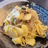 レシピを知ってすぐ作って大好きになったので昨日リピしたのですが細めのパスタで作ったら失敗しました 早く茹で上がってしまうパスタだとお芋の仕上がりが間に合わないのでパスタ選び結構重要ですね