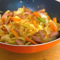 キャベツの代わりにピーマンを使いました。ピリ辛で美味しいです!
