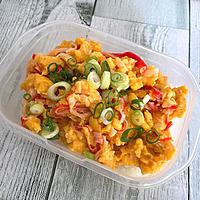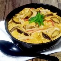 レンジだけで作れる手軽さが魅力の一品です。ふわふわトロトロの卵とカニカマの旨味が絶妙にマッチし、ご飯がどんどん進みます。コーヒー用ミルクを加えるとさらにコクが出て、しいたけやニラを加えてアレンジを楽しむこともできます。レンジの加熱時間を調整することで、お好みの半熟具合に仕上げられます。包丁やまな板も不要で、忙しい時のランチにぴったりの中華風どんぶりです。