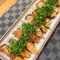 エリンギと豚肉の相性抜群の一品です。豚バラ肉は薄切りで巻きやすく、蒸し焼きにすることでエリンギがジューシーに仕上がります。大葉を一緒に巻くと香りが引き立ち、仕上げの梅肉ソースがさっぱりと爽やかなアクセントに。酸味と旨みのバランスが絶妙で、食欲がない時でもパクパク進みます。お酒のおつまみとしても◎。表面をカリッと焼き上げるのがコツです。