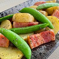 ベーコンをウインナーにしましたが大変美味しく頂きました。新じゃがなのでレンジで簡単でしたしスナップえんどうも香りが効いて良い取り合わせでした。