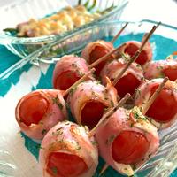 「ミニトマトのクリームチーズベーコン巻き」の作り方を簡単で分かりやすいレシピ動画で紹介しています。