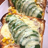 アボカドの濃厚な味わいとコーンの自然な甘みが絶妙なハーモニーを奏でる一品です。トーストの上にマヨネーズで和えた具材をのせ、チーズをトッピングして焼くだけの手軽さが魅力。仕上げに振りかける黒こしょうがアクセントになり、ジューシーな食感と香ばしい香りが楽しめます。ツナの代わりにベーコンやソーセージでアレンジしても美味しく、朝食やランチにぴったりの食べ応えある一枚に仕上がります。