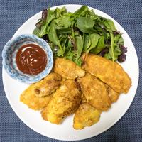 鶏むね肉に塩こしょうを振ったあと、薄力粉をまぶしてから卵液をつけました。衣がしっかりとつき、ふわふわの食感でした。簡単でおいしいです。