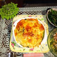 - 7 ごはんの材料を混ぜ合わせ、グラタン皿に敷き詰めます。