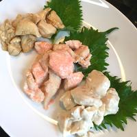 少ない調味料で簡単、シンプル!ささみはレンジより熱湯に入れて火を消し蓋をして5分放置する方が好きなのでそっちで火を通しました。小さめに切った方がもっと味馴染み良かったかなぁ。2種類の味のオシャレなおつまみ☆