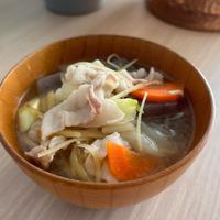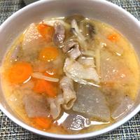 一杯目はレシピ通りの豚汁、二杯目はうどん、豆板醤を追加で楽しみました😄