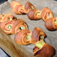 パン屋さんにもよく売っているベーコンエピにアスパラガスを入れてアレンジしたパンのご紹介です。アスパラガスの食感が美味しくゆず胡椒の風味が少しピリッと感じられます。朝食や軽めのランチなどにぜひ試してみてくださいね!