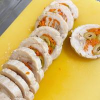 塩抜きや、長時間置かなくても作れる鶏ハムのご紹介です。今回は通常の鶏ハムにプラスして彩り豊かなニンジンとオリーブを入れてみました。お皿に盛りつけても切り口がとっても綺麗なので、パーティーなどでも喜んでいただけます。是非作ってみてくださいね。