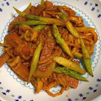 切り干し大根に、ケチャップ?って意外、と思ったけど、スパゲッティのナポリタンのように仕上がったので、びっくりしました。