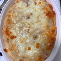 山芋を倍量にしたのでめんつゆも大さじ2。ピザ用チーズとパルメザンチーズもかけました。さっぱりしてるのに山芋でお腹いっぱい!ヘルシーグラタンとして今後色んな具材で試してみたいレシピです。
