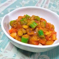- 8 野菜の水分が飛んできたらホールトマト缶を入れて弱火で10分程煮こみます。じゃがいも、にんじんがやわらかくなったら火を止めます。