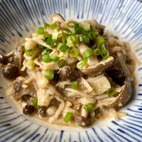 3種類のきのこをごま和えにしてみました。白すりごまをたっぷりと使って、風味よく、優しい味に仕上げました。電子レンジで簡単にお作りいただけますので、あともう一品欲しいときにもぴったりですよ。ぜひお試しくださいね。