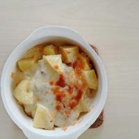 - 3 耐熱容器に2を入れてピザ用チーズのせ、オーブントースターで10分程焼きます。