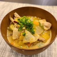 具材に余っていた油揚げも追加。野菜や豚肉から出汁が出て、シンプルな味付けなのにすごく深みのある味になりました。具沢山で栄養満点だと思いました❣️