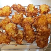 また、衣が付きにくいとのレポ対策はポテト+片栗粉+パン粉+小麦粉追加で解決。