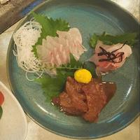 大葉とミョウガがなかったのでネギと卵黄をのせてみました。