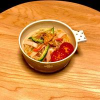 豆板醤のピリッとした辛みが食欲をそそる本格的な春雨サラダです。にんじん、きゅうり、えのきなど野菜をたっぷり入れてヘルシーに仕上がります。パクチーを加えると本場のアジアンテイストに、大葉やセロリに変えてもアレンジ自在。ナンプラーの風味が全体をまとめ、さっぱりとした後味で箸が止まりません。お弁当のおかずとしても相性抜群で、作り置きにも便利な一品です。