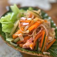 見た目は普通の春雨サラダでも、食べたら辛味がクセになってしまうエスニック風に味付けした春雨料理のご紹介です。辛いものがお好きな方は、お料理の前菜としてさっぱりと美味しくいただけるので、ぜひお試しください。