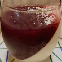 生クリーム多めで作りました。ぶどうジュースの代わりにバタフライピーで♪とてもおいしかったです♪