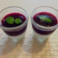 ヨーグルトムースと、グレープゼリーを2層のデザートはいかがでしょうか。ヨーグルトムースを流し込む際に容器を傾けるだけで斜めになり、可愛いらしい見た目に仕上がりますよ。おもてなしにもぴったりなので、ぜひ試してくださいね。