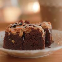 混ぜて焼くだけの簡単なブラウニーです。仕上げにホワイトチョコレートをかけることで見た目も華やかになり、アーモンドスライスの風味や食感もたまりませんよ。簡単なのに本格的な見た目なので、おもてなしやプレゼントにもぴったりです。ぜひお試しくださいね。