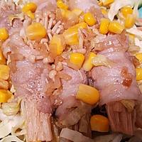 - 3 豚肉に2のキャベツをくるくる巻いていきます。