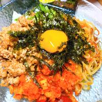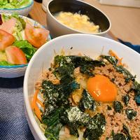 ちゃちゃっと簡単にごはんを作りたいときにおすすめの、ビビンバレシピです!野菜1種類ごとにナムルを作るのではなく、全て一緒に炒めてナムル風の味付けにし、甘辛く炒めたひき肉と合わせました。仕上げにトロッと卵と絡めれば、やみつきの味わいに仕上がります。野菜もたっぷりとれるので、ぜひお試しください。