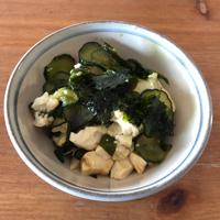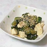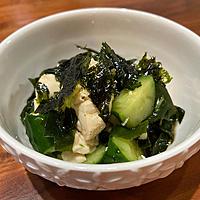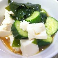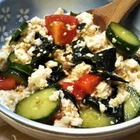 中華風のドレッシングで絹ごし豆腐、きゅうり、わかめを和えた簡単なサラダのご紹介です。 ごま油の風味とお酢の酸味がマッチしたドレッシングでさっぱり食べられますよ。 副菜やお酒のおつまみとしてもオススメなので、ぜひ試してみてください。