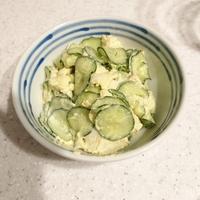- 3 きゅうりは薄い輪切りにしてボウルに入れ、塩を加え全体を混ぜ合わせ5分程おき水気を切ります。