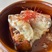 フライパンにチーズが流れるので耐熱皿に移してトースター3分(スライスチーズ使用)