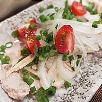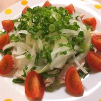 - 6 粗熱のとれた2を器に盛り、水気を絞った3、4、小ねぎ、5をのせて、ポン酢をかけたら完成です。