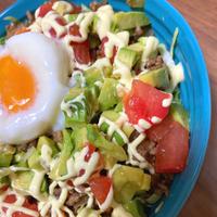 温泉卵とマヨネーズとアボカドとトマトの相性がバッチリで美味しかった。