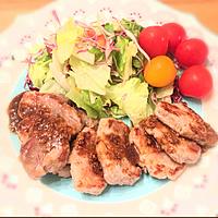 塩胡椒&小麦粉〜じんわり焼くだけ簡単😋ソースも洗わず同じフライパンでOK🍳もっと薄切りの肉だったら更に時短😆マーマレードジャムを足しても美味しそうw今日もご馳走様でした🙏感謝☺︎