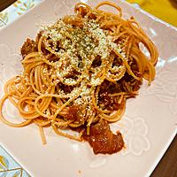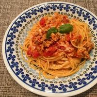 ボロネーゼってもっとあまじょっぱいソース感強めだと思ってたから、このレシピはトマトパスタって感じであっさり目。これはこれで美味しい。
