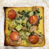 新じゃがいもがごろごろ入った具材を使って、パンで手軽に作れるキッシュの紹介です。朝ごはんや、ブランチにとても合いますよ。サラダをつけてワンプレートにすればカフェ風にもなります。具材の野菜は、玉ねぎ、しめじ、ブロッコリー、パプリカなどお好きな野菜を組み合わせて作っても美味しいですよ。ぜひ作ってみてくださいね。