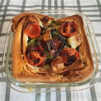 4枚切りの食パンがなかったので耐熱容器に6枚切りの食パンを2枚敷き詰めました!