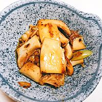 - 3 エリンギに焼き色がついたら中火のまま、しょうゆを入れ炒め合わせます。