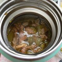 - 3 水、(A)を入れて中火で沸かし、1を加え山東菜がしんなりするまで煮ます。