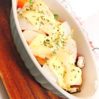 カラフルな数種類の野菜を一皿に集め、チーズをたっぷりのせて焼き上げました。野菜の素材のおいしさを楽しめるように、味付けはシンプルに塩こしょうのみで仕上げました。お好みの野菜を加えてアレンジもできるので、ぜひお試しくださいね。