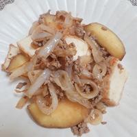 ボリュームアップしたくて、油揚げを厚揚げにして、玉ねぎも入れました!甘辛でおいしかったです!