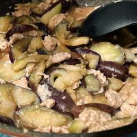 - 4 ナスがしんなりしたら鶏ひき肉を入れて中火で炒めます。