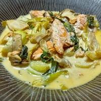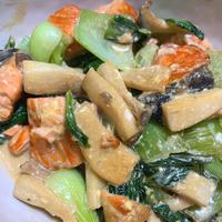 鮭とチンゲン菜のマヨポン酢炒め レシピ・作り方