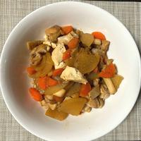 山口県の郷土料理、けんちょうをアレンジした一品のご紹介です。鶏もも肉、油揚げ、しいたけなどを加えて、ボリュームアップさせているので、食べ応えがありますよ。旨味が増し、ごはんのおかずにもぴったりです。ぜひお試しくださいね。