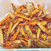 顆粒だし適当、醤油大1、砂糖小2、鷹の爪少し、汁気飛ばす