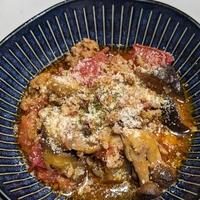 ベースとなる具材は鶏ひき肉とナスで、玉ねぎやトマトの旨みが溶け込んだ深い味わいが特徴です。仕上げにモッツァレラやピザ用チーズをトッピングすると、まろやかなコクが加わり、さらに美味しさがアップ。パスタやパン、ガーリックトーストにのせても相性抜群です。作り置きして冷凍保存も可能で、忙しい日の献立にも重宝する万能おかずです。