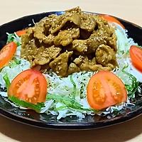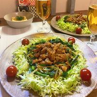 カレーの香りで食欲そそる、合わせて炒めるだけで簡単に作れるカレー風味の生姜焼きです。下に敷いたキャベツと大葉のサラダも、お肉と合わせて食べるとより美味しく召し上がれます。豚こま肉は豚ロース肉でも美味しく召し上がれます。