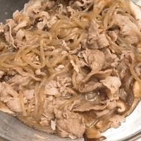 - 2 耐熱ボウルに(A)、水を入れ混ぜ合わせ、牛こま切れ肉、1、しらたきを入れます。ふんわりとラップをし、600Wの電子レンジで5分加熱します。