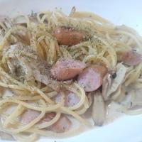 - 準備 スパゲティは1000mlに対して小さじ2の塩を入れた沸騰したお湯に入れ、パッケージの表記より1分短い時間で茹でて、湯を切っておきます。 ウインナーは5mm幅の斜め切りにしておきます。 しめじ、まいたけは石づきを取り除きほぐしておきます。 ニンニクはみじん切りにしておきます。
